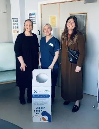 NHS Lothian and InnoScot Health have united to support the environmental ambitions behind newly designed scrubs that enable partners to provide vital skin-to-skin contact with their newborns after a caesarean section. As part of this collaborative effort, upcycling stations have been introduced at St John’s Hospital in Livingston, encouraging staff to donate used NHS fleeces. These garments are then repurposed to create more Cozy Cuddle Scrubs (by Stacey)™.The special theatre scrubs allow newborns to nestle inside, regulating their heart rate and breathing, as well as assisting with immediate bonding, while the surgical team focus on the mum and the completion of the procedure.The idea from Elective Section Midwife, Stacey Boyle, and Senior Charge Midwife, Marianne Hay of NHS Lothian, was developed alongside the Health Board’s Research and Development team, ACCORD, with formal NHS partner InnoScot Health assisting in protecting, registering the design and supporting manufacture.The teams have worked together to produce an eye-catching upcycling box, encouraging staff to drop off their used fleece jackets in three prominent places throughout the hospital, in turn allowing the garments to be re-employed for addition to further new scrubs.The scrubs also have been designed to be washed in routine hospital laundry, in line with NHS infection control measures.Regulatory Project Manager at InnoScot Health, Paula Sweeten said: “Helping this wonderful project come to fruition as part of a close-knit team of like-minded people has been very exciting, and we’re delighted at the innovative outcome.“It’s meant that Cozy Cuddle Scrubs (by Stacey)™ are now well-placed to become more widely available through the support of a manufacturing partner, potentially allowing them to reach more hospitals and improving outcomes further afield.“Before the scrubs were introduced, newborns were often placed on the chest of birthing partners and covered with blankets or towels. That did not always effectively retain warmth, meaning babies were at risk of having to be admitted to special care.“Inherent in the scrubs’ design for optimal warmth retention was a real sustainable, reusable element and it’s great that we’ve now managed to take that a step further with very visible upcycling boxes to tell staff that they can make an important contribution by donating something they no longer need.”Jenni Semple, Soft Facilities Area Manager, St John's Hospital, said: “It is vital that we support our own innovations, and so we’ve been pleased to welcome the introduction of these fleece upcycling points, encouraging all to turn idea into action.“The scrubs were already a real collective endeavour, including the help of the hospital’s sewing team, and this now extends that effort to further staff members.“We’re so proud of Marianne and Stacey and hope that more staff can now get involved in providing the scrubs’ raw materials.“This will make a valued contribution to the labour ward and wider sustainability aims – not just for NHS Lothian but for NHS Scotland’s targeting of net zero emissions by 2040.” Tags News Publication date 25 Jun, 2025